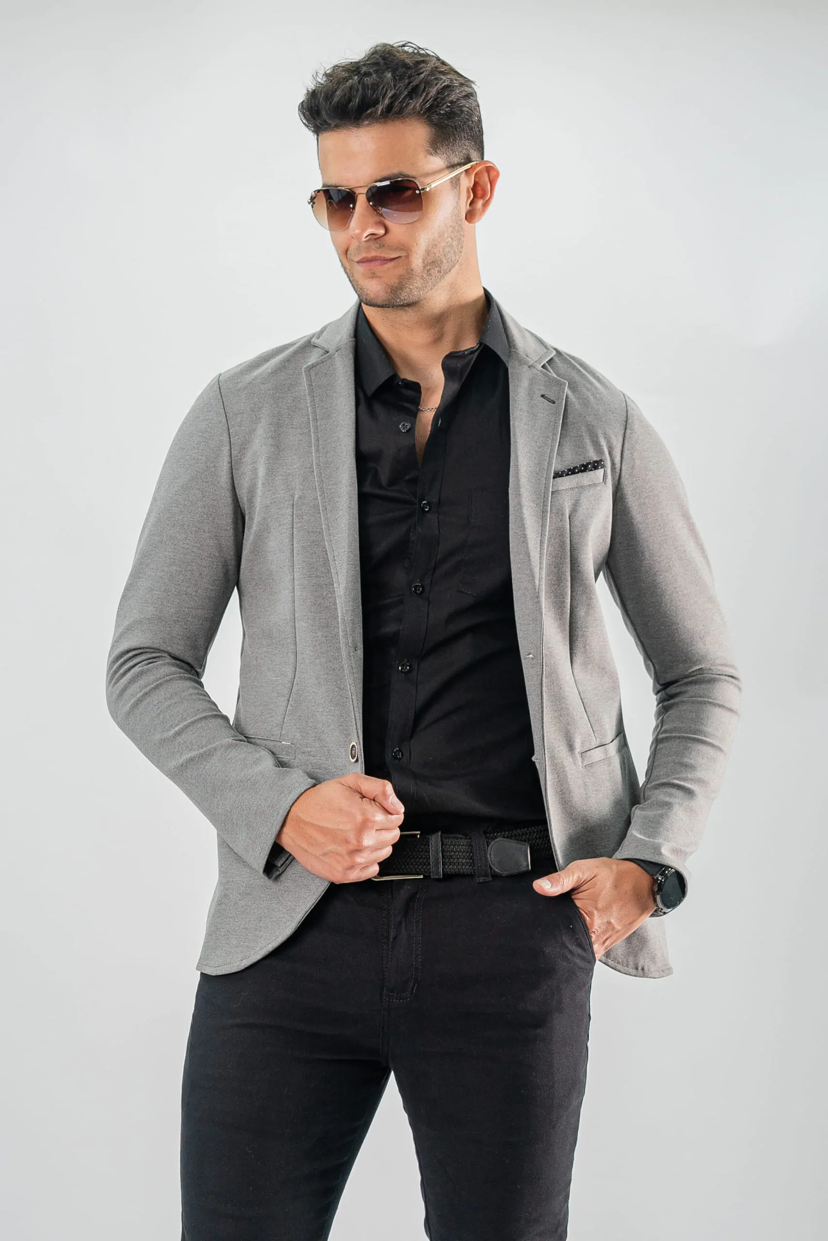 Blazer slim fit casual tipo marinero algodón strech en tejido de punto